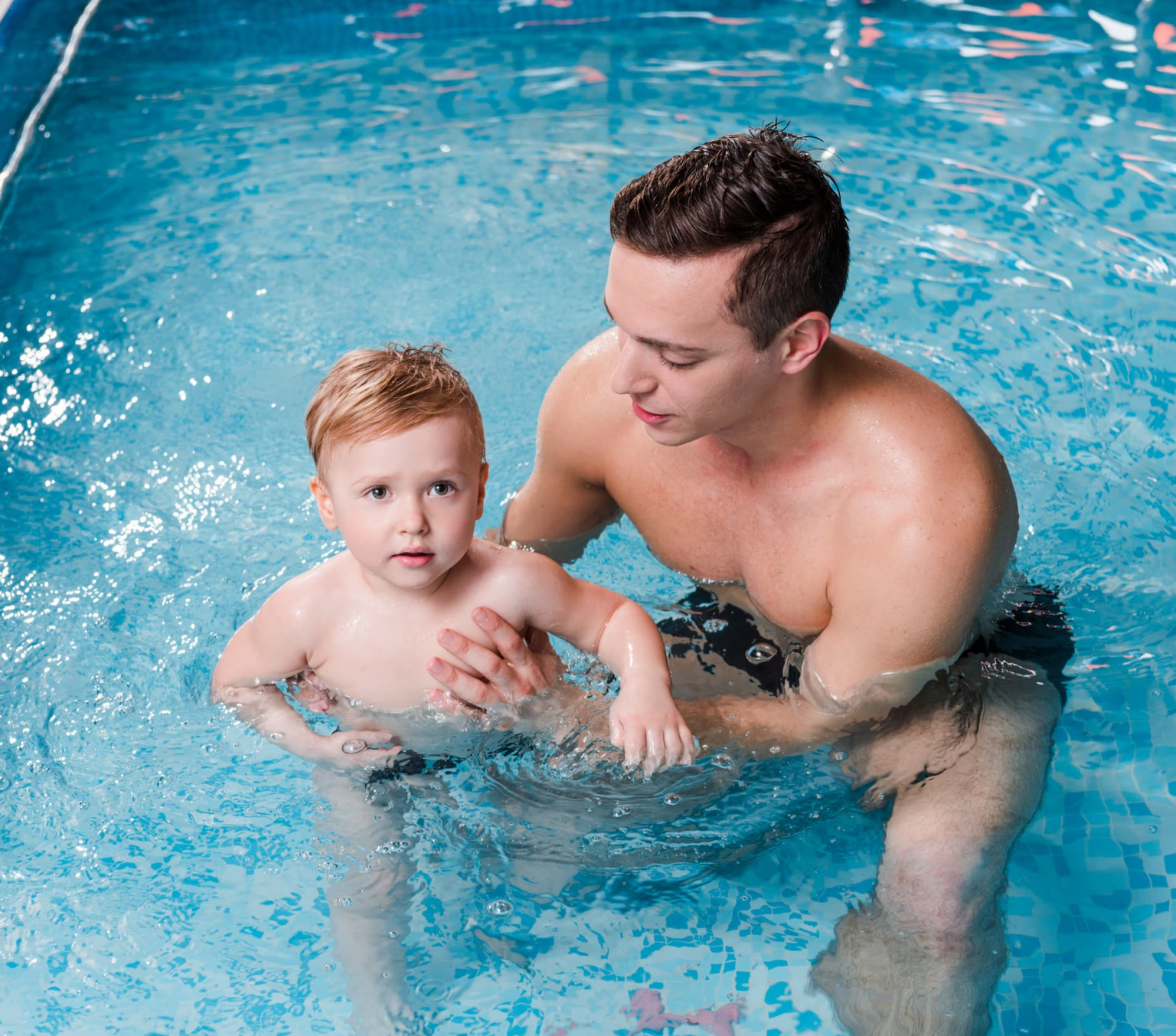 Beim Eltern-Kind-Schwimmen wird der natürliche Bewegungsdrang der 4-monatigen bis 4-jährigen sinnvoll genutzt und ohne Leistungszwang ausgelebt. Gemeinsam werden die Grundbewegungen im Wasser wie z.B. das Tauchen oder das Springen geübt und gefördert. Die Kinder beteiligen sich mittels Kreis- und Singspielen an den Gemeinschaftsaktivitäten. In verschiedenen Gruppen, je nach Alter der Kinder, wird für Kreativität, Spiel und Spass gesorgt. Durch den bewussten Körperkontakt, die Blickverbindung und die Aufmerksamkeit gegenüber dem Kind wird die Eltern-Kind-Beziehung intensiviert. Das Kind bewegt sich selber, fühlt sich durch die Unterstützung der Eltern aber auch sicher und wohl.